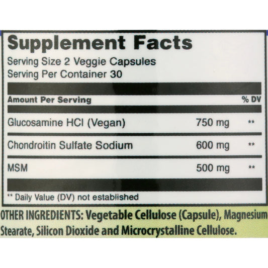 Glucosamine Chondroitin & MSM Shellfish Free 60 Veggie Capsules