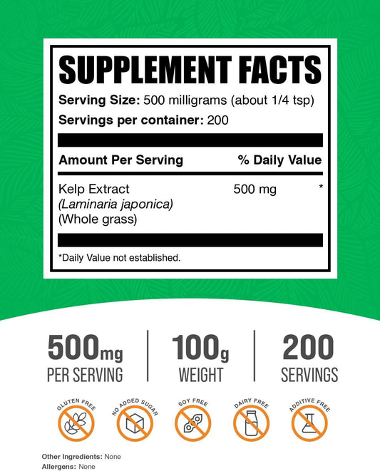 .Com Kelp Extract Powder - Kelp Supplement, Kelp Powder, Brown Seaweed Extract - Seaweed Supplement, Gluten Free, 500Mg per Serving, 100G (3.5 Oz) (Pack of 1)