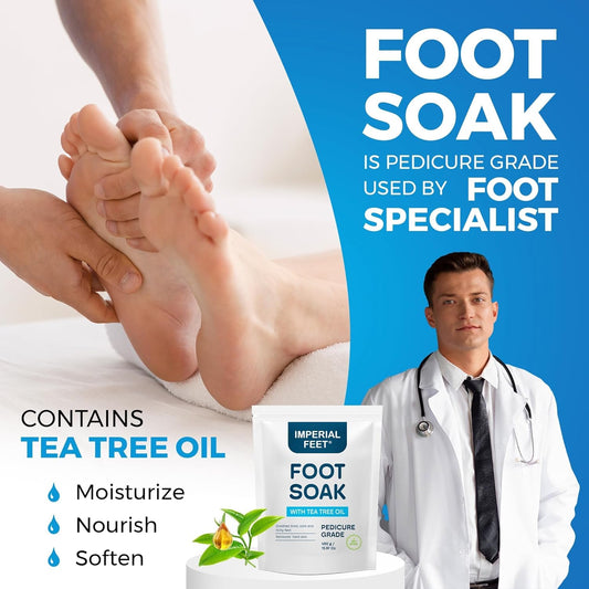 Epsom Salt Foot Soak W Tea Tree for Foot Bath (Pedicure Grade) - for Toenail Repair, Athletes Foot, Softens Calluses, Sore & Tired Feet, Nail Discoloration Foot Soak Salts, Smelly Foot Therapy16Oz