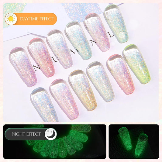 Glow in the Dark Nail Polish, Luminous Neon Nail Polish, Glitter Green Glow in the Dark Nail Polish, Glow Effect Regular Nail Polish Quick Dry for Finger Toe Salon Home DIY Beginner 10ML
