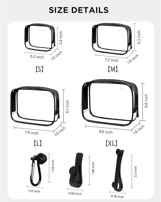 4 Packs Clear Bogg Beach Tote Bag with 4 Insert Hooks Accessories for Bogg Bags Travel Makeup Clean Toiletry Brush Organizer Cosmetic Divider Storage Inner Pouch (Bogg Clear Black, Pack of 8)