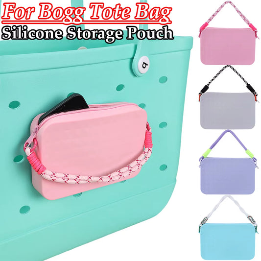 Silicone Storage Pouch Waterproof Large-Capacity Cosmetics Storage Bag Reusable with Lanyard Phone Holder for Bogg Bag