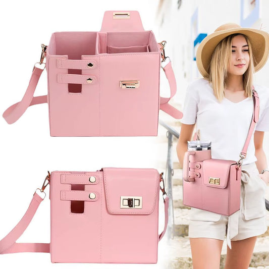 Outdoor Portable Crossbody Water Cup Storage Bag Water Bottle Carrier with Adjustable Strap Leather Carrier Bag Storage Pocket