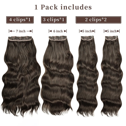 Brown Clip in Hair Extensions 23 Inch 4Pcs Long Wavy Hair Extensions Double Weft Synthetic Hairpieces for Women