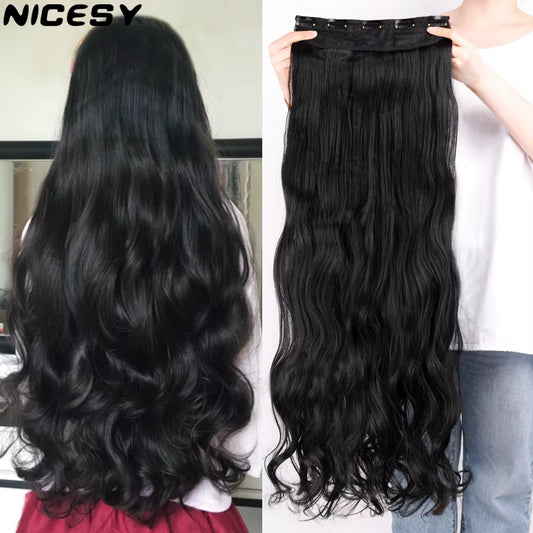 5 Clips Long Wavy Clip in Hair Extensions Synthetic Heat Resistant One Piece False Blonde Hair Black Brown Hairpiece for Women