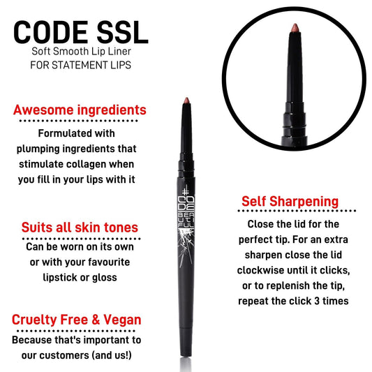 Lip Liner | 3 in 1 Lipliner Lipstick Lip Plumper | Lip Liner Sharpener Built in | Nude Lip Liner | Vegan & Cruelty Free Lipliner | SSL Soft Smooth Lip Liner