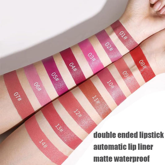 Retrospecti Double Ended Lipstick Automatic Lip Liner Matte Waterproof Non-Fading Non-Stick Lipstick, Lip Liner and Lipstick Combo, 2-In-1 Waterproof Lipstick Lip Liner 24 Hour (#14)